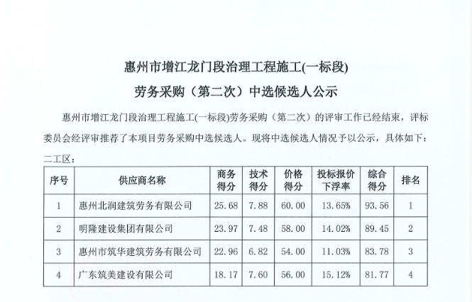 惠州市水電建筑工程有限公司勞務(wù)供應(yīng)商庫擴庫評審結(jié)果公示……